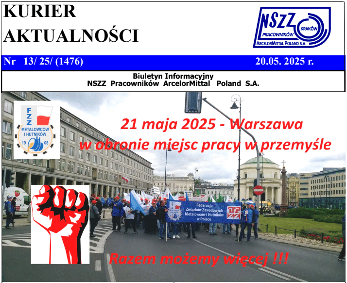 21 maja 2025 r. o godzinie 12:00 pod Sejmem RP w Warszawie odbędzie się ogólnopolska manifestacja pracowników przemysłu. Protest organizowany jest w odpowiedzi na pogarszającą się sytuację w sektorach metalowym i hutniczym oraz narastające zagrożenie dla miejsc pracy w całym przemyśle energochłonnym. Federacja Związków Zawodowych Metalowców i Hutników apeluje o szerokie wsparcie i liczny udział. […]